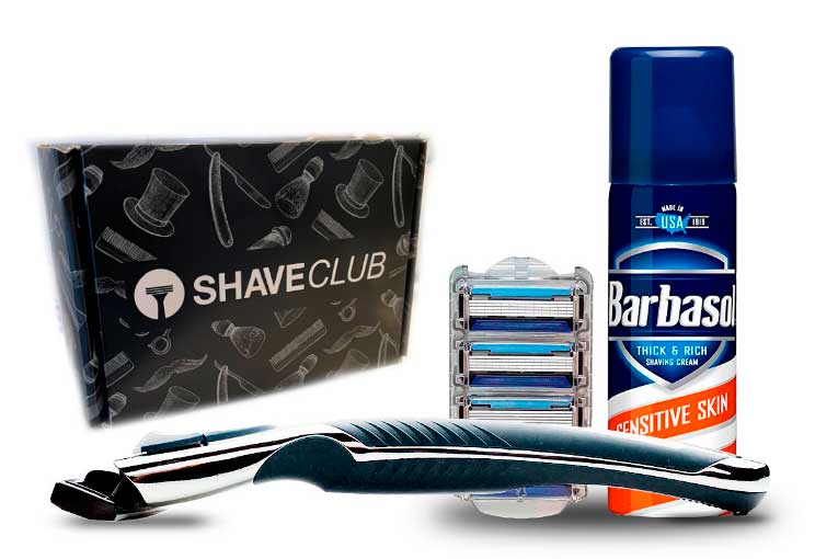 Nuestros kits de afeitado se componen de un mango reutilizable, repuesto de 3, 4, 5 o 6 hojas y una crema de afeitar de la marca Barbasol® (marca número 1 de USA).